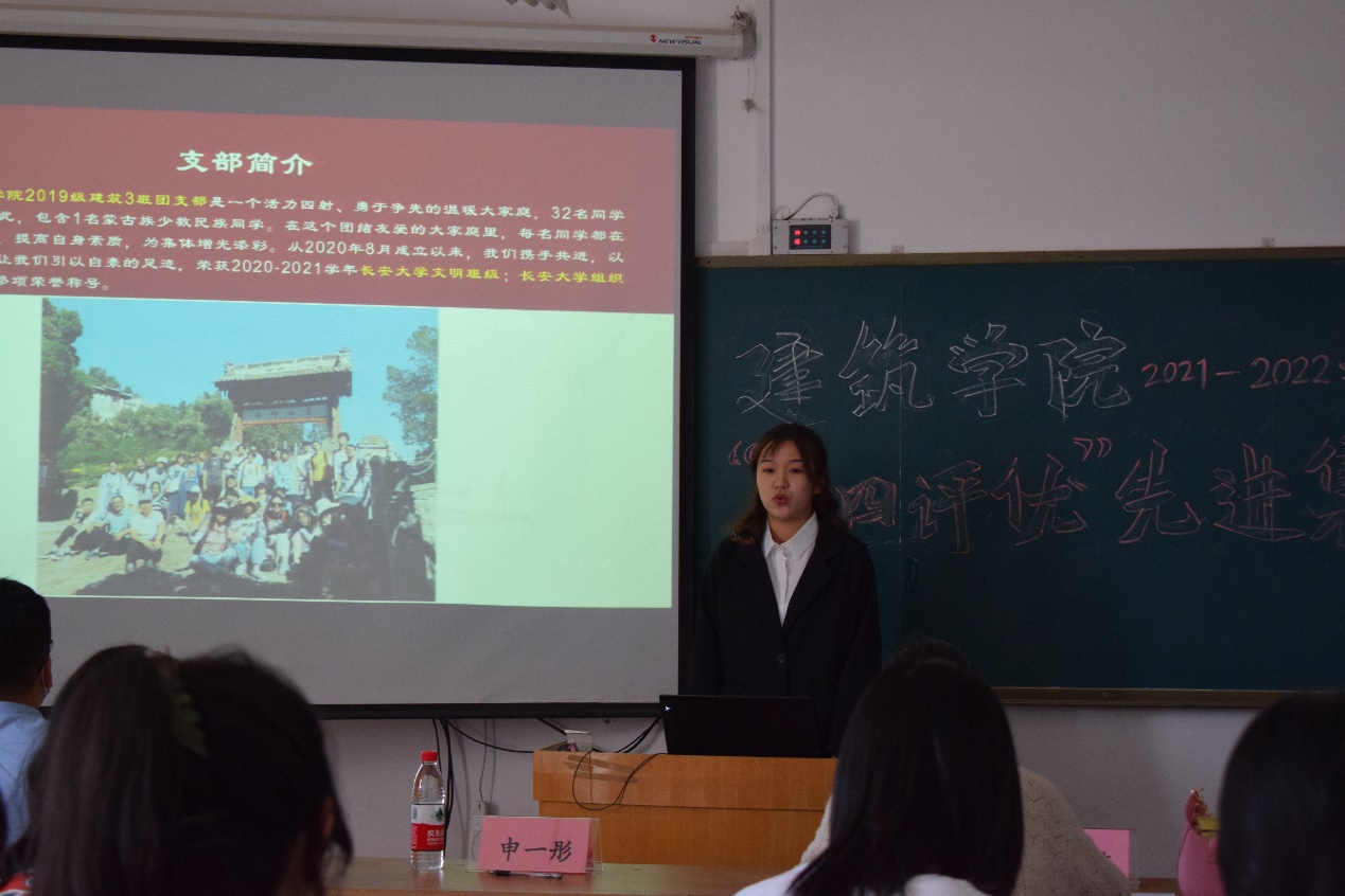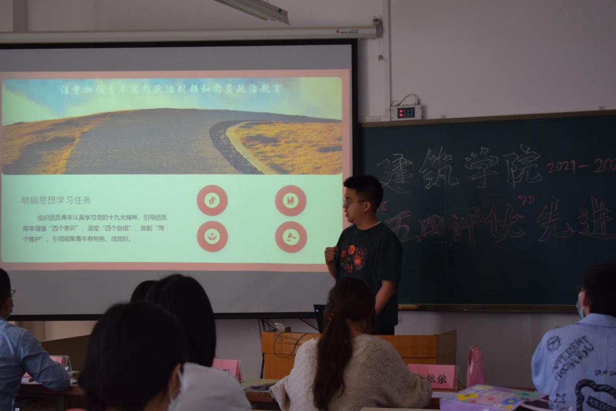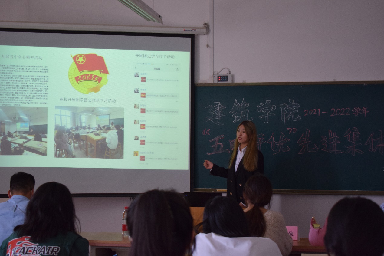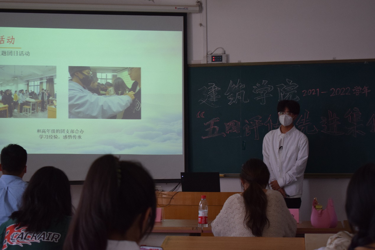 2021-2022学年,久久小说 各团支部在久久小说 团委的领导下,以习近平新时代中国特色社会主义思想为指导,开展了一系列团学工作,并取得了显著的效果,为总结经验,表彰先进,树立典型,久久小说 于4月8日在建筑馆SY2413举办“五四评优”先进集体答辩会。