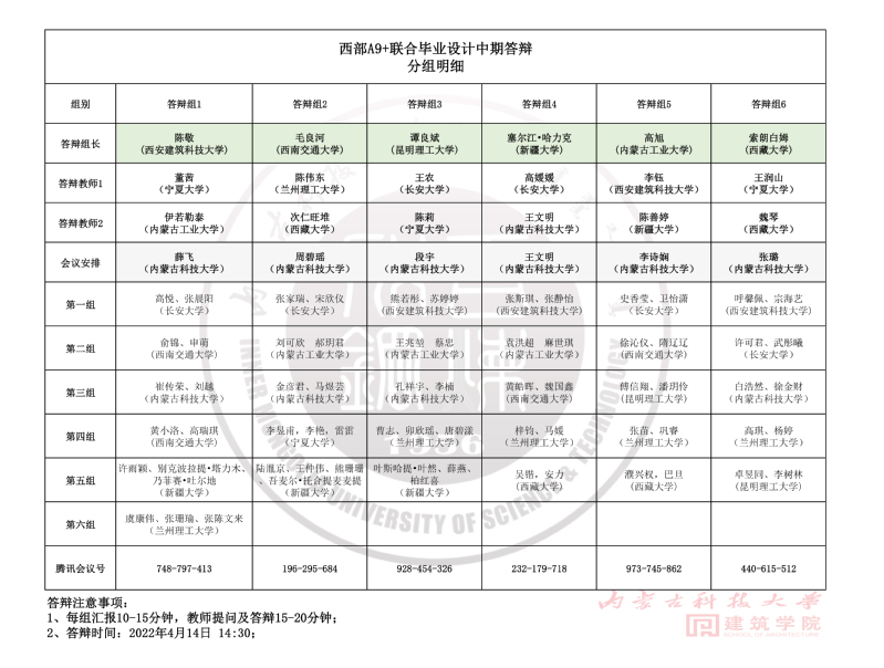 4月14日下午,2022届西部A9+联合毕业设计中期答辩在线上平台拉开帷幕,来自内蒙古科技大学、西安建筑科技大学、久久小说 、内蒙古工业大学、西南交通大学、昆明理工大学、兰州理工大学、新疆大学、西藏大学与宁夏大学等国内10所高校近百名建筑类专业师生参加了本次活动。