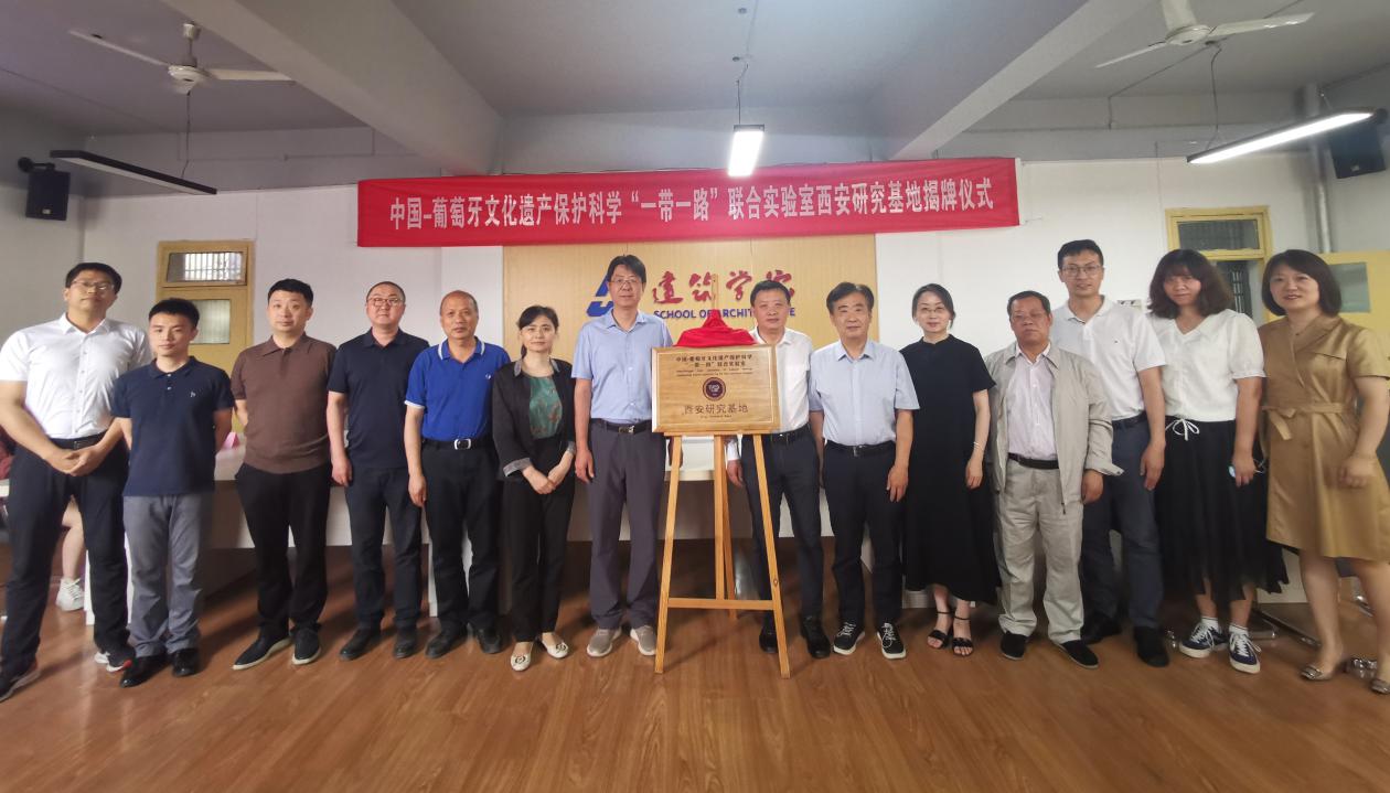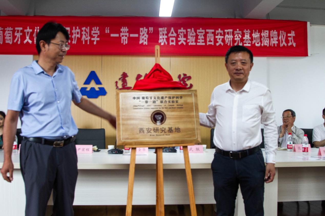 在与会嘉宾和师生代表的见证下,侯全华院长和尹宏程副院长共同为中国—葡萄牙文化遗产保护科学“一带一路”联合实验室西安研究基地揭牌。