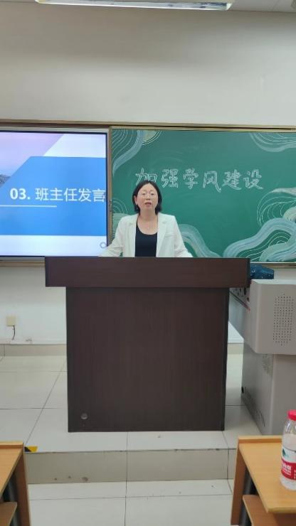 然后,班主任王少锐老师发言,王老师回顾了这一年带领建筑四班经历的事,表达了从入学教育、中秋晚会、疫情期间家乡美食打卡到搭建作业等的亲身感受,并肯定了班级志愿者同学的勇于担当,无私奉献,表扬了班级同学的在这一年的辛苦付出。