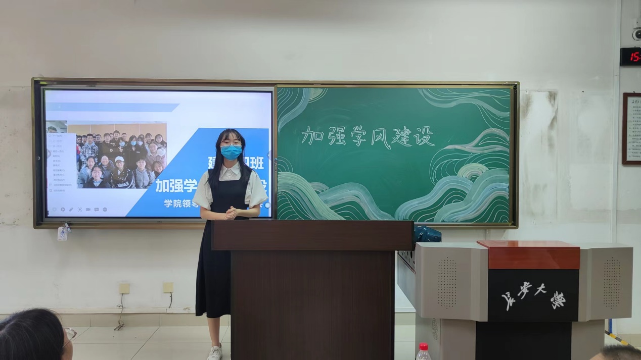 班会开始,班长殷嘉旋同学向参加班会的领导、老师介绍建筑四班的整体情况,并带领大家一起回顾了过去一年班级组织、参与的活动,以及班级同学在学业、文体活动、科研竞赛中所取得的喜人的成绩。