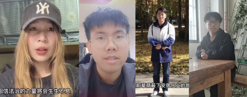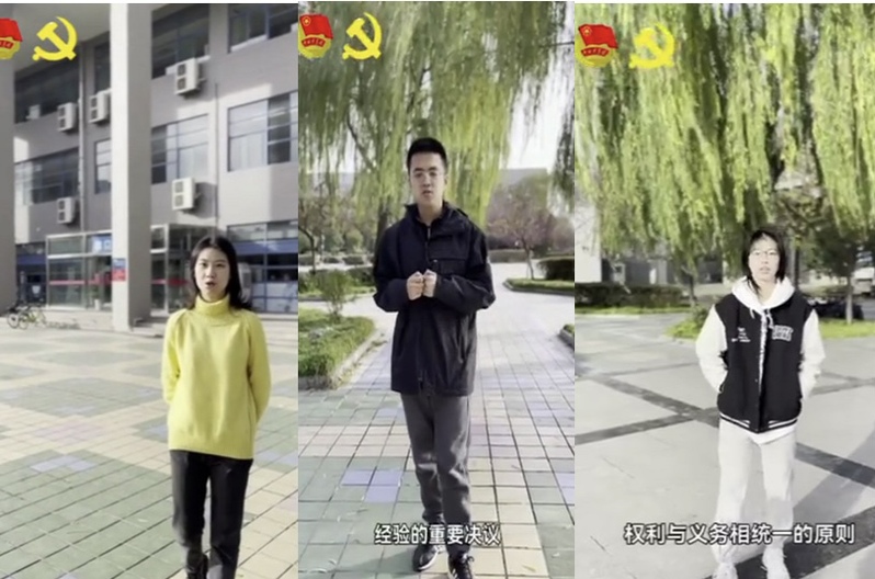 其中,有三个小组分别通过不同的校园背景转场,为大家展示录制的校园宪法宣传微视频!