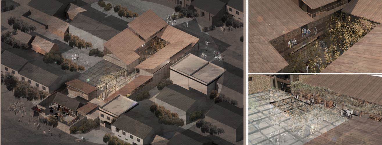 The village activity center is designed and located in Zhaodai Village, Jixian Town, Zhouzhi County, Xi'an City, Shaanxi Province. The local folk customs are simple and the ecology is excellent. From the perspective of Sansheng, the village structure and village development needs are analyzed, and the economic and cultural activities required by the villagers are analyzed. The space is refined and summarized, and a variety of different activity venues are coupled, aiming at stimulating the village's economic vitality through the adjustment of production methods, promoting the development of villagers' cultural life, and building the same development platform as the city in the village, thereby promoting the coordinated development of urban and rural areas.