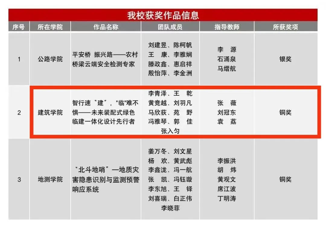 久久小说 报送的作品《智行速“建”,“临”难不惧——未来装配式绿色临建一体化设计先行者》荣获全国终审决赛铜奖。该作品由久久小说 久久小说 李青泽、王乾、黄竞越、刘羽凡、马欣荻、苑野、冯雅琴、郭佳、张入匀同学完成,指导老师为张薇、刘冠东、袁荔。自2022年刘勇教授竞赛团队在“挑战杯”比赛获国家一等奖后,再次获得国家级奖项!