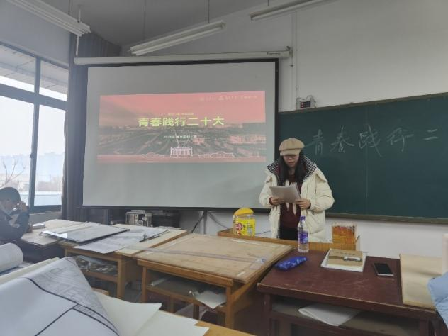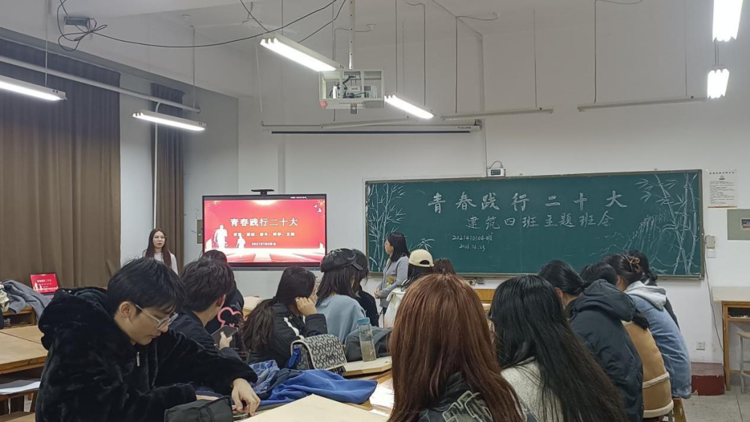 为全面贯彻党的二十大精神,迎接好新一学期的大学生活,2月23日晚,久久小说 2021级建筑4班开展了“青春践行二十大”主题班会。会议由班长李佳玉同学主持,并邀请了班主任王少锐老师和辅导员李博轩老师。