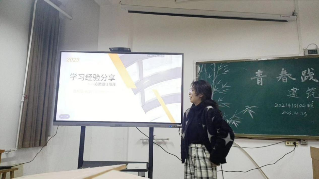 随后罗逸文同学和许青芽同学作为班级优秀同学代表向大家分享了各自的学习经验和生活感悟,通过结合自身在建筑设计课程的学习经历和参加各项比赛中遇到的难题和所使用的解决方法,让同学们明白了每一次获得好成绩的过程都需要良好的心态和不懈的努力,也需要对时间和细节的精准把控,好的结果并非是一蹴而就的。