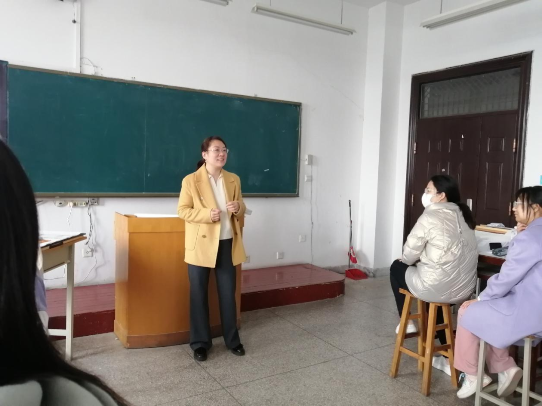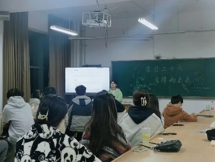 活动伊始,先由班主任张薇老师发言,在学习、生活方面与同学们交流,向同学们传授经验,提供建议。并且,在专业培养上张老师给出了具体的例子和建议,并鼓励同学们追求自己的人生,不盲目攀比,脚踏实地向前奋斗。