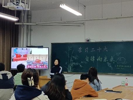 “我们更要对自己高标准严要求,只争朝夕,不负韶华,继续学习专业知识,为国家建设贡献青春力量。” 班长李佳骏同学对此次班会进行了总结,并组织大家观看征兵视频。