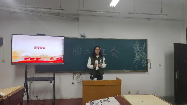 接下来是体育委员王静宜同学发言。她说到,在过去的一个学期,同学们之间彼此满满熟知了解,在这个成员个性丰富、兴趣广泛的班级中相处融洽。伴随着封控管理的结束是新学期的到来,希望大家能够尽早适应线下的正常学校生活。