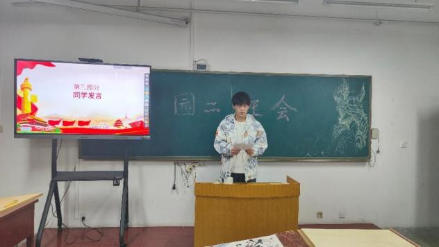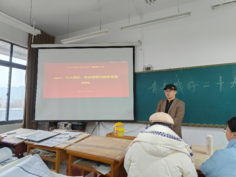 接下来,班主任杨育军老师以个人成长、专业理想与国家发展为主题,结合党的二十大理论,为同学们专业学习和未来发展竖起一面旗帜。