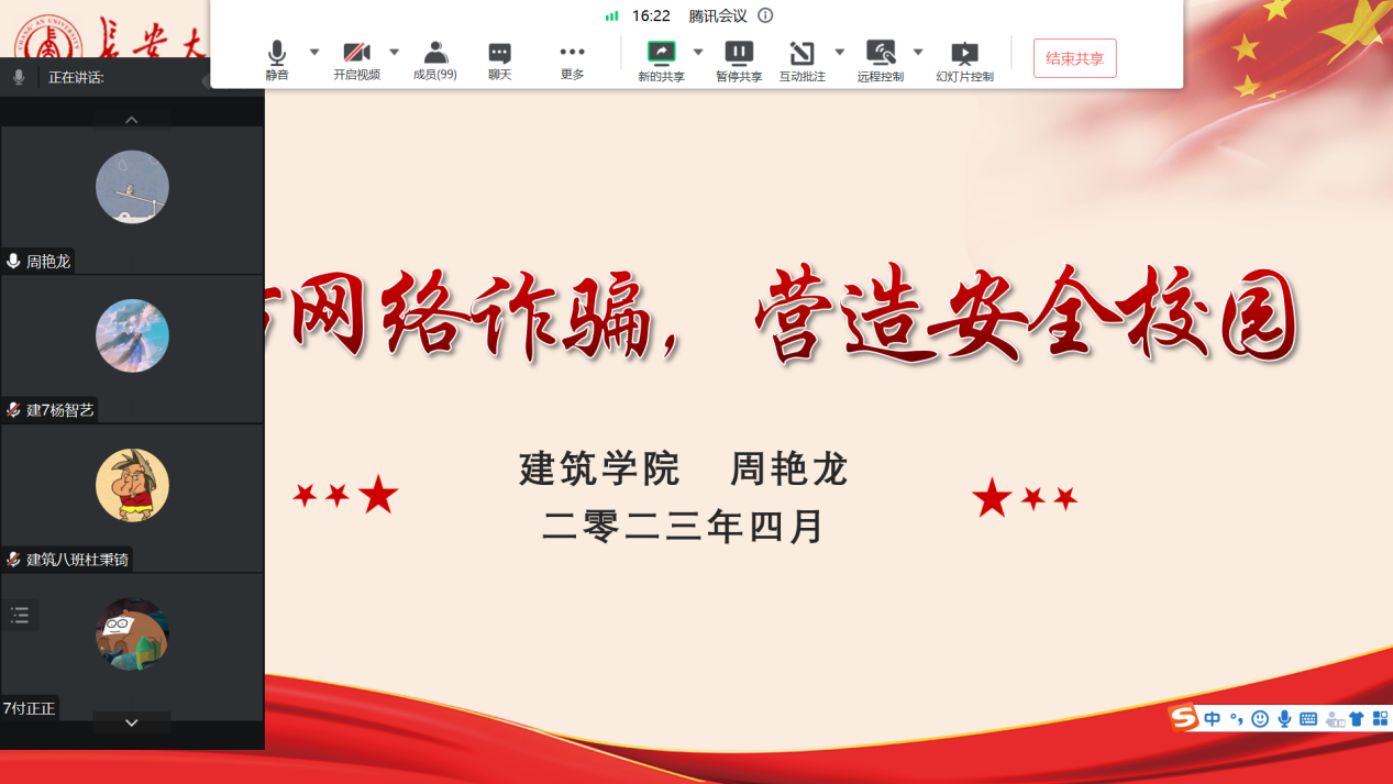 安全教育是一项常抓不懈的工作,是高校思想政治工作体系中的重要环节。通过这次主题班会,提高了同学们的安全意识以及对国家安全的重视程度,引导学生树立正确的安全观,增强安全防范意识,提升自我管理能力,共同维护安全稳定的校园学习生活环境,将安全教育渗入学生的心田,融入学生的常态化教育管理服务之中,助力平安校园建设。