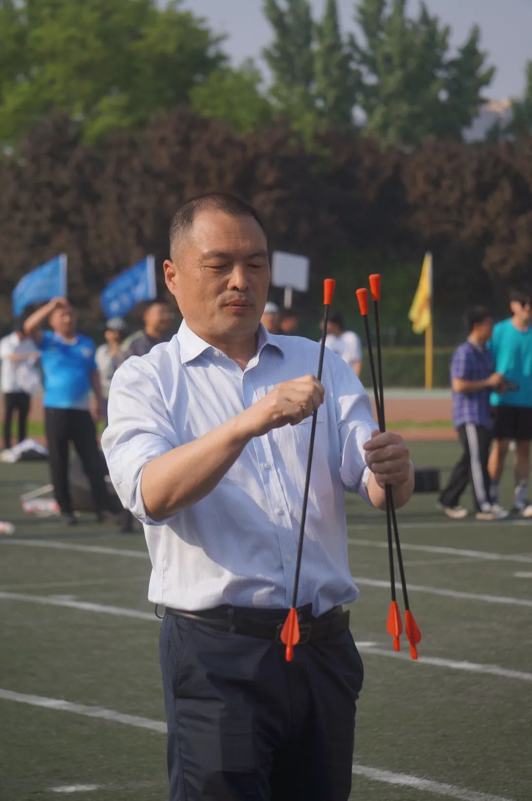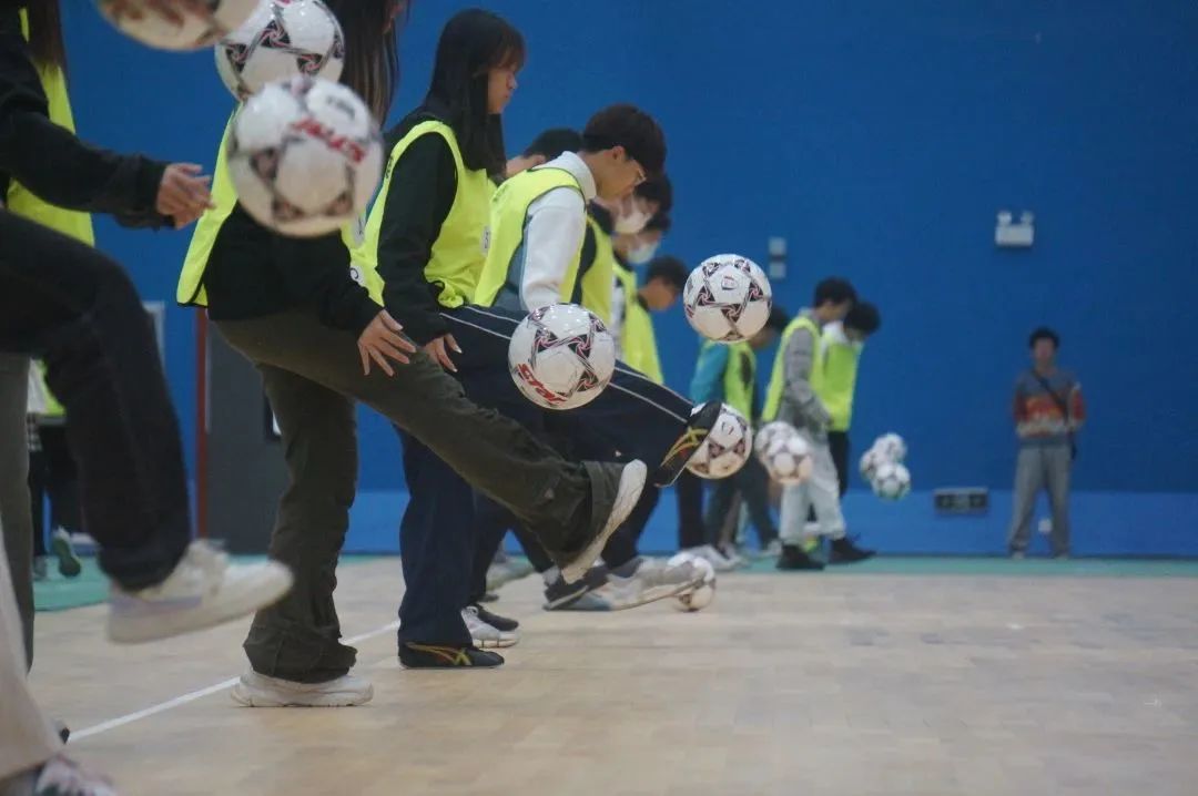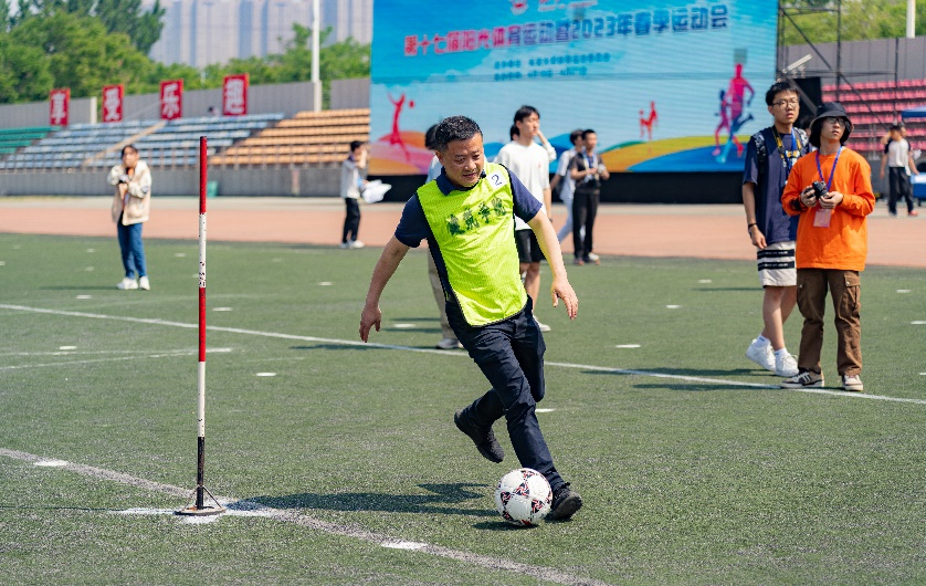 在教工组比赛项目中,学院领导积极参赛、奋勇争先,为同学们树立了榜样。白骅老师在乒乓颠球跑比赛获全校第一,刘鹏老师在足球运球赛中获全校第六。