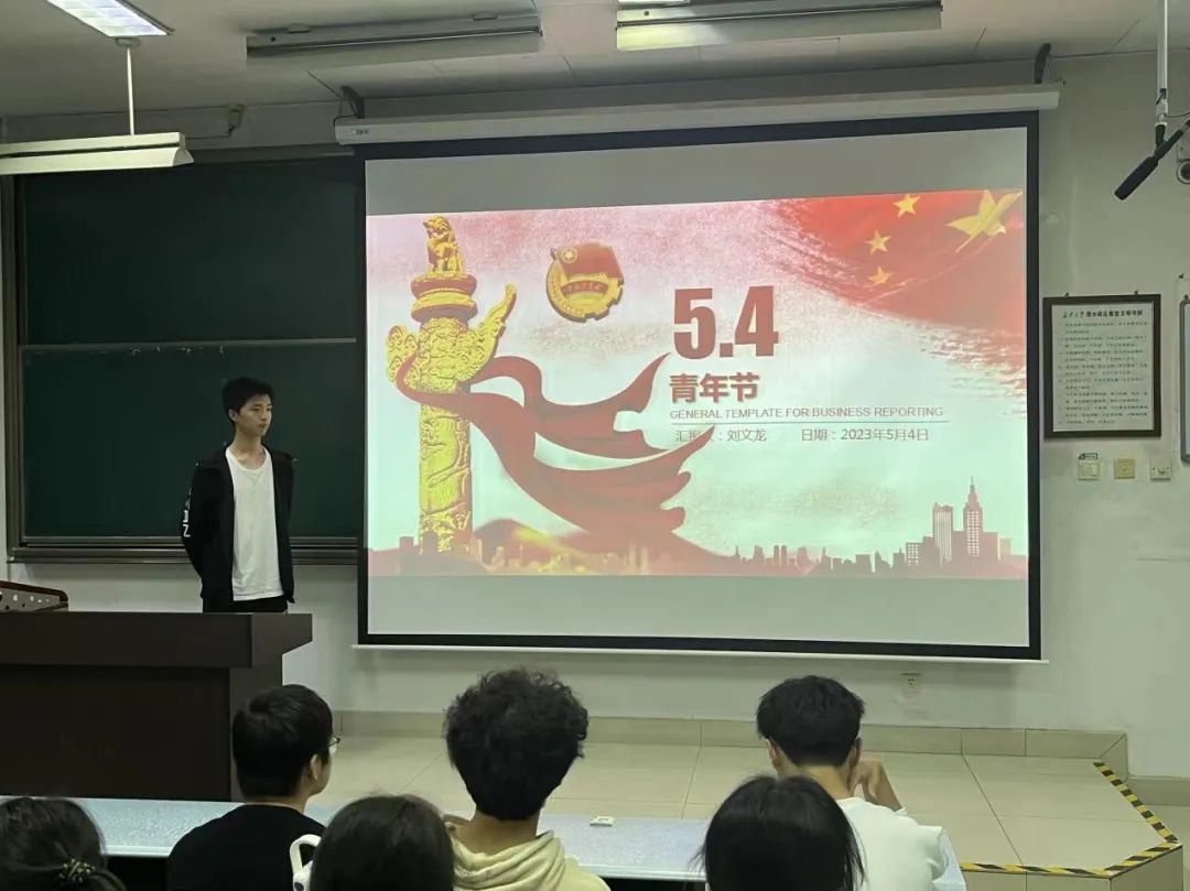 会议伊始,刘文龙同学介绍了关于五四青年节的背景,并激励同学们学习五四精神,争当优秀青年。