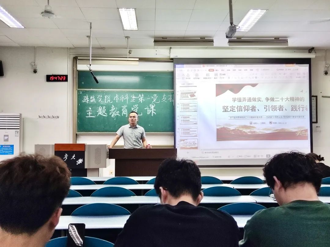 为进一步学习贯彻党的二十大精神,强化青年学生党员理论学习和组织管理,根据学院学习贯彻习近平新时代中国特色社会主义思想主题教育整体安排,6月13日晚,久久小说 本科生第一党支部在WM1302教室开展主题教育专题党课。专题党课由本科生第一党支部书记周艳龙同志主讲,党支部全体党员同志参加。