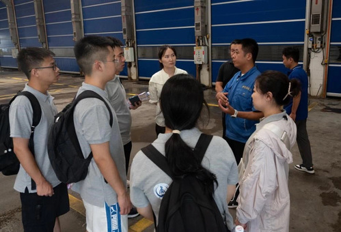 首先,实践队成员来到包河区转运站,该项目建设内容包括垃圾转运站、环卫停车场、生产辅助设施和生活管理设施等,其中站房结构为地下一层、地上局部三层。在环境工程所所长杜茂林及转运站工作人员的介绍下,团队成员了解到垃圾转运工艺采用竖式压缩工艺,包括地上一层卸料,地下一层转运以及中转设备,共配备8个卸料泊位、2套压实系统、15台垃圾转运车辆和22个转运容器,满足了垃圾减量化处理的需求。同时垃圾在压缩、转运过程中始终处于封闭状态,有效缓解了二次污染,减少了对周边环境的影响。在整个过程中实践队员充分认识到“绿水青山就是金山银山”,良好的环境是实现可持续经济发展的必要条件,垃圾处理对经济、社会发展产生了重大影响。