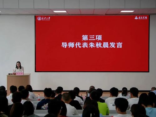 导师代表朱秋晨鼓励同学们要坚定远大志向,明确发展目标,并自觉肩负起为国家进步作出贡献的责任。她表示,同学们对学术精神和学术目标要有更加透彻的思考,要明确学习方向、了解专业前沿知识,要学术与实践并重,要向更高远的方向奋进前行;坚持实事求是的学习态度,将科学研究作为不断完善和超越自我的机会;关注身心健康,保持积极心态,坚守初心,坚韧面对压力,勇往直前,迎接崭新的篇章。