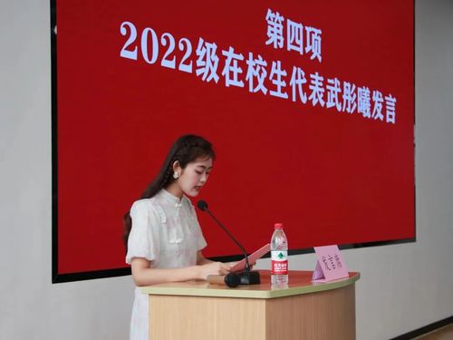 2022级在校生代表武彤曦以个人的学习和生活经历向同学们提出真诚建议——在学术之路上,学无止境。她建新生同学们要多阅读学科相关的顶刊,紧跟学科前沿动态,不断拓展知识面,掌握研究方法;提升学习效率至关重要,与导师、师兄师姐和同学积极交流,参与项目和竞赛,将学识融入日常学习中,实现知行合一;积极参与学术会议,追求创新,要有无畏失败的精神,不忘初心,坚守理想信念,时刻铭记时代赋予的使命。