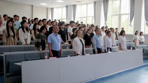会议第一项,奏唱国歌,全院师生端庄肃立,面向国旗,齐声唱响国歌。