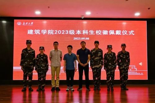 在新生代表发言结束后,建筑系、城乡规划系主任和建筑技术所所长为学生代表佩戴校徽。