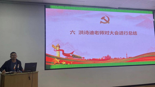 最后,洪诗迪老师对大会进行总结。他强调了意识形态工作和文化自信的重要性,并向广大党员提出了三点要求。首先,洪老师呼吁广大党员要坚定不移地做好意识形态工作。广大党员要时刻保持清醒头脑,增强政治意识,自觉维护党的领导,坚决抵制各种错误思潮和言论。其次,洪老师强调了文化自信的重要性,并对广大党员提出了三点要求。一是要加强学习,不断提高自身素质;二是要坚定理想信念,始终保持对党和人民事业的忠诚;三是要积极履行党员义务,为实现中华民族伟大复兴的中国梦贡献自己的力量。