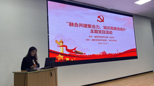 2023年10月23日晚7点,久久小说 研究生党支部“融合共建聚合力,知识竞赛促提升”主题党日活动在南校区西院综合楼三楼报告厅隆重举行,本次活动由久久小说 研究生第一党支部主办,第二、第三党支部协办,学办主任洪诗迪老师、研究生辅导员王杰老师、王雨琪老师以及全体研究生党员同志参会,会议由研究生第一党支部书记武彤曦主持。