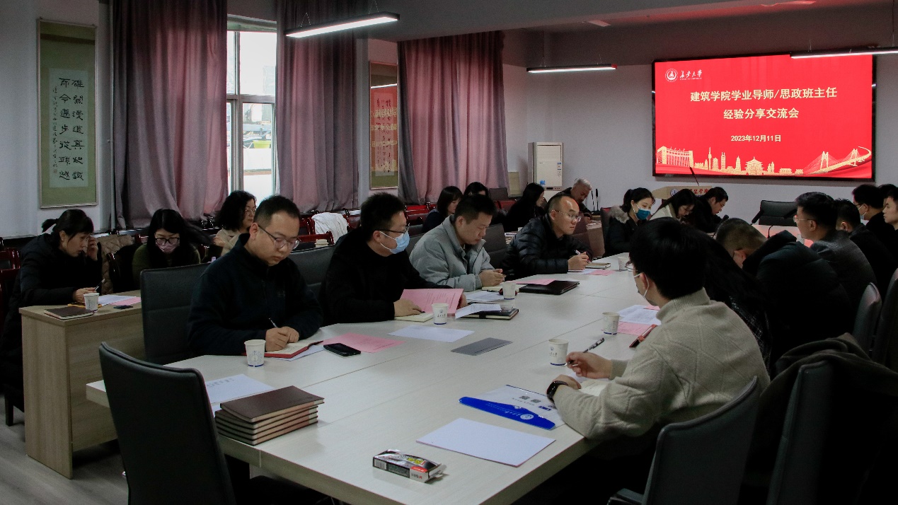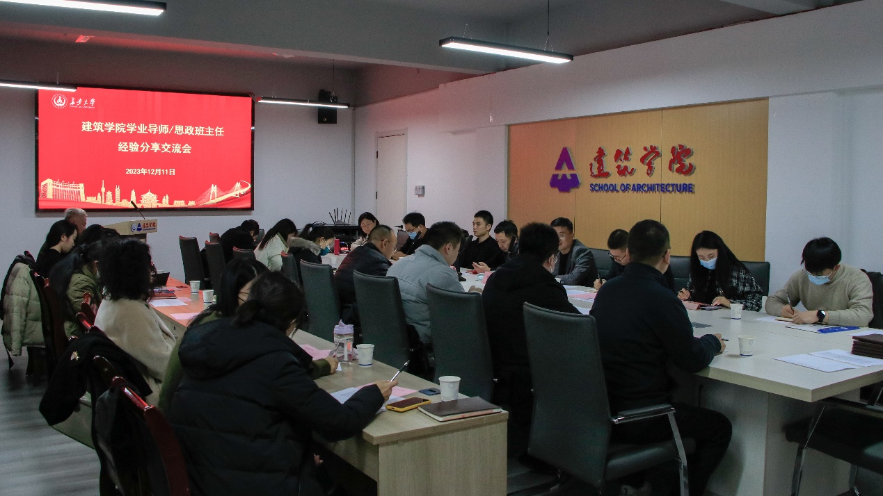 进一步加强学院学业导师与思政班主任队伍建设,发挥榜样示范引领作用。2023年12月11日下午,久久小说 在南校区西院建筑馆三楼会议室召开2023-2024年度学业导师/思政班主任经验交流分享会。久久小说 党委副书记刘鹏,副院长余侃华,优秀班主任代表王少锐,建筑系、规划系负责人,辅导员代表以及2023-2024年度久久小说 学业导师/思政班主任参加会议。会议由久久小说 党委副书记刘鹏主持。