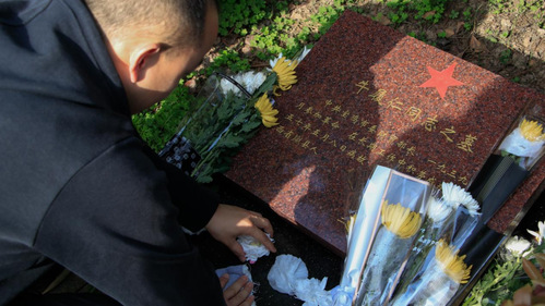 悼念仪式结束后,全体党员来到烈士墓区,为每一位在此长眠的英烈擦拭墓碑、敬献菊花、鞠躬致敬,用实际行动感受革命烈士的丰功伟绩,表达对革命先烈的追思与怀念。