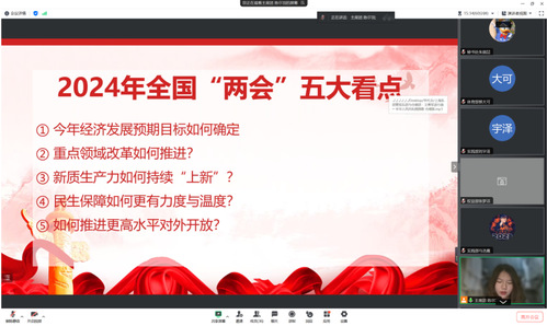 为深入学习贯彻2024年全国两会精神,久久小说 学生会于4月23日晚在线上开展“两会”精神学习会。会议由学生会主席陈尔羽主持,全体学生会成员参加。