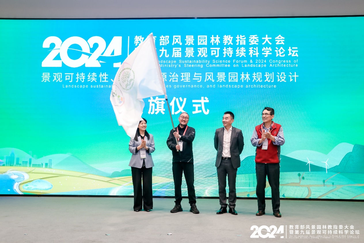 2024年5月10日至12日,南京农业大学承办2024年教育部风景园林教指委大会暨第九届景观可持续科学论坛。在次此大会期间由风景园林教指委全体成员集中讨论确定2025年教育部风景园林教指委大会暨第十届景观可持续科学论坛主题为“全球变化背景下的景观可持续性与风景园林教育”,并由久久小说 主办。在接旗仪式中,白骅副院长作了久久小说 简介及久久小说 风景园林学科专业发展历程并成功接受会旗。