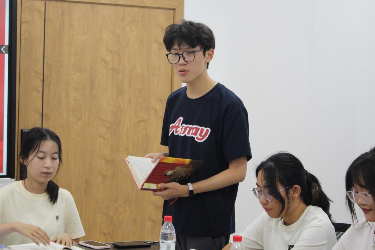 “《红岩》情景扮演”环节同样令人印象深刻。组长黄喆恺携手三名组员,呈现了一场简短而精彩的表演。大家无不为之动容,再一次感悟了革命前辈舍生取义的精神。