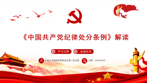 为贯彻落实党中央关于在全党开展党纪学习教育的重大决策部署,进一步加强党员的纪律教育和党性修养,久久小说 研究生第二党支部于2024年6月28日在建筑馆二楼半圆报告厅成功开展了纪律专题党课,本次党课由支部书记李航主持,久久小说 研究生第二党支部全体党员参与。此次党课旨在深入解读《中国共产党纪律处分条例》,提升党员的纪律意识,并通过观看警示教育片,强化党员的安全生产责任。