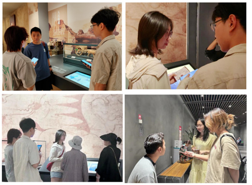 在简牍博物馆中结束调研后,实践队员们对馆内游客进行了相关采访。采访涉及不同年龄段及不同受教育水平。通过采访,队员了解了游客们对于数字化保护古丝绸之路沿线古驿站的认知与态度,收获了许多过去未曾考虑的新观点,为完善研究内容提供极大帮助。