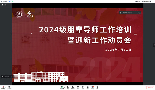 为做好学院2024级迎新准备工作,帮助新同学更快完成角色身份转变,适应校园生活,进一步了解院情,久久小说 于7月31日下午15:00时召开2024级朋辈互助工作培训暨迎新工作动员线上会议。参加本次会议的有久久小说 学办主任洪诗迪、团委书记申一彤、2022级本科生辅导员周艳龙、2023级本科生辅导员张鸿忠、2024级本科生辅导员落昊飞、2024级全体朋辈导师以及学院各学生组织负责人。会议由周艳龙主持。