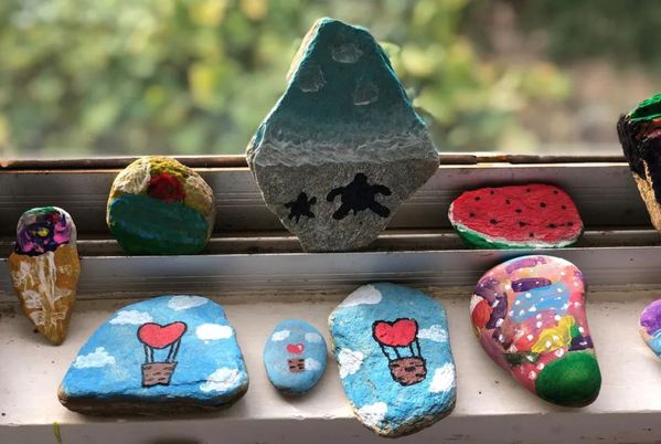 巧手慧心筑稚梦,以石为媒绘童心实践队员带领孩子们在自己精心挑选的石头上用画笔尽情创作,各种精美的图案跃然石上,有的石头变成了五彩斑斓的海洋世界,有的成了美丽的自然风景…….在彩绘石头活动中,可爱的“石头画”成了孩子们幼小心灵中“美”的化身,让孩子们更加亲近自然,通过艺术创作提升美学素养,同时增强了孩子们的自然环境保护意识。