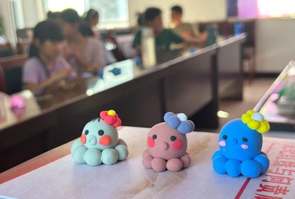 黏土捏捏塑童真,美育无声心赋能实践队员为孩子们提供黏土捏捏小课堂,带领孩子们动手捏出自己喜欢的小动物,跟随着实践队员的教学,孩子们的小手灵活地揉搓、按压、拉伸,一步一步地一个个各不相同充满童趣与想象力的“小章鱼”出现在了孩子们的桌子上。通过动手实践黏土制作,不仅能够培养孩子们的实践能力,激发孩子们的想象力和创造力,还有助于提升心理健康水平,增强他们的团队协作和沟通能力。