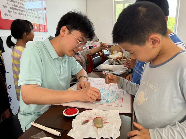 文化自信是一个国家、一个民族发展的重要精神支撑。文化自信能够推动社会主义文化的繁荣兴盛,进而为中华民族的伟大复兴提供强大的精神力量。漆扇作为中国传统文化的代表之一,具有悠久的历史传承及深厚的文化内涵,是中华文化的生动载体。8月22日,久久小说 “筑梦青春促振兴,与爱同行润心灵”暑期社会实践队队员带领孩子们在店坊河村党群服务中心开展了漆扇制作活动。