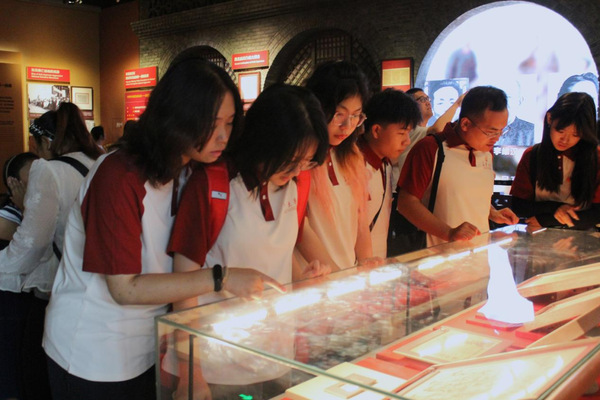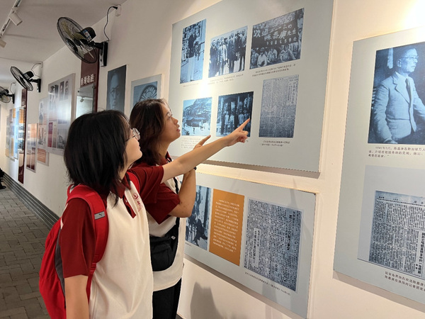 图为实践队成员们参观华侨联合救国会宋艾义摄