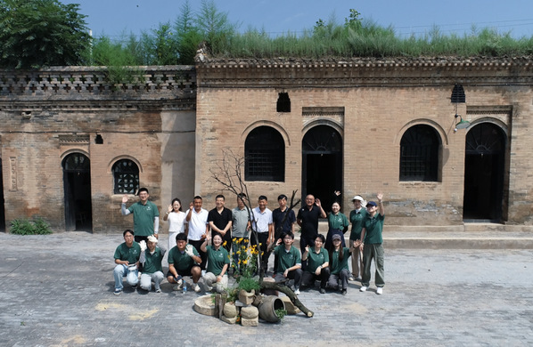 古院落景观小品搭建结束后留影