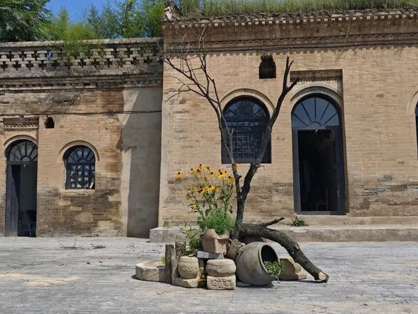 现出独特的韵味,与背后的窑面相得益彰,与明清古窑洞交织出一段历史与未来的对话,象征着丁村的复兴与蝶变。