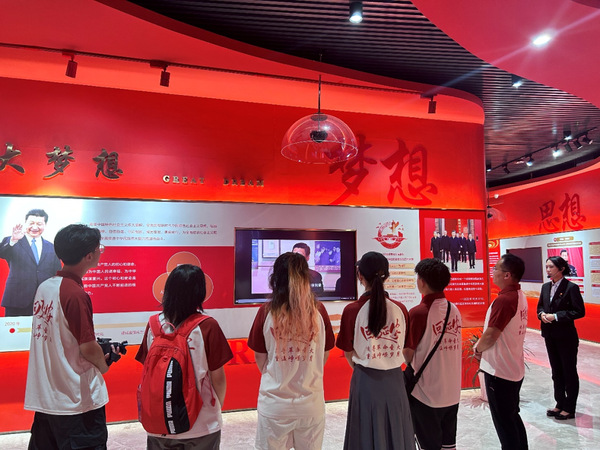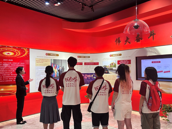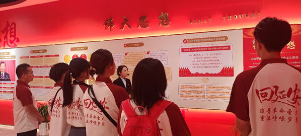 工作人员为实践队员们讲解伟大奋斗篇章 施展摄