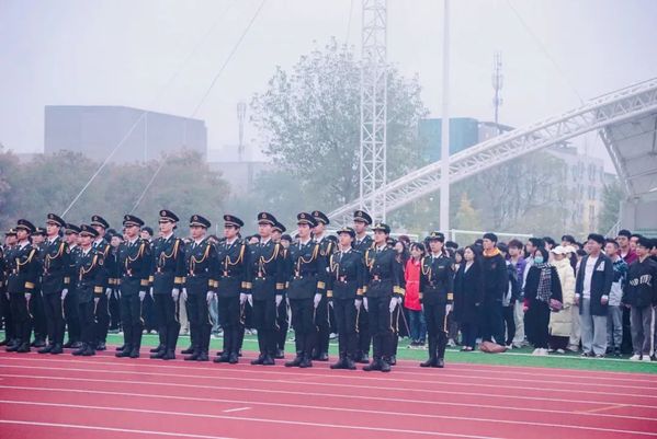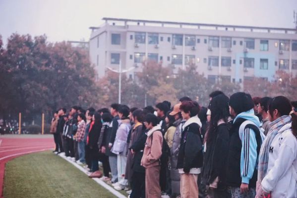 6:45,全体师生在朝晖园体育场整齐列队集合。秋日的清晨略显寒冷,但这丝毫未能打消他们的热情。同学们宛如一株株刚劲的青松,身姿挺拔,井然有序地站立于晨光之下。