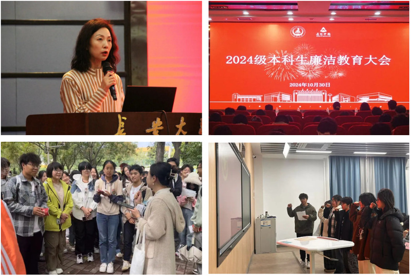 2024—2025学年新生教育工程实施方案》有关要求,紧紧围绕落实“立德树人”根本任务,从思想引廉、实践促廉、文化育廉“三条线”,到融入思政元素、融入日常管理、融入实践活动、融入文化宣传“四融入”,面向2024级本科生,积极开展廉洁文化教育。