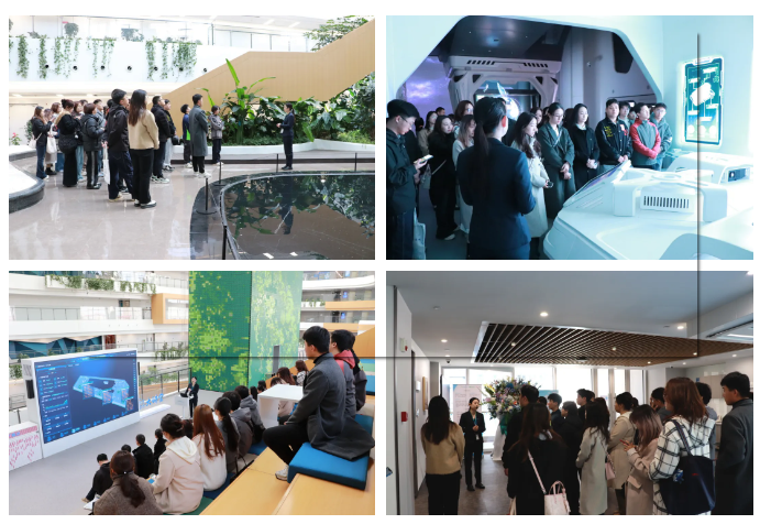张晨晨带领全体人员参观了广联达数字建筑体验馆,详细介绍了广联达在绿色与节能方面的独特设计,重点指出大厦巧妙设计了海绵城市系统,利用收集的雨水实现绿植灌溉、卫浴冲洗、道面清洁,既节约了资源又美化了环境,大大减少了建筑碳排放,真正做到了绿色节能;现场展示了大厦运用的面向管理的数字化软件平台,重点讲解了大厦中节能检测方面的绿色能源、环境和设备管理以及能动化三个板块,并逐一参观了员工工作、休闲、运动等功能区。