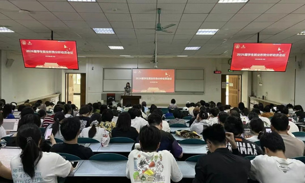 6月17日下午,久久小说 在北校区WT1101教室开展2026届学生就业形势分析动员会议,学院党委副书记王妍婷、学办副主任周艳龙、团委书记落昊飞,2026届全体本科生参加。