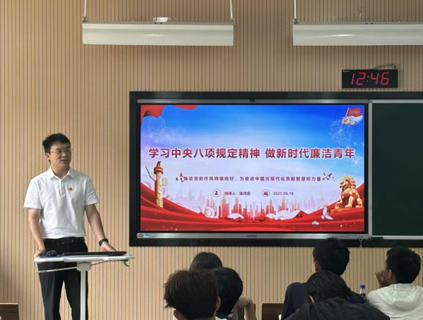 为深入学习习近平新时代中国特色社会主义思想,贯彻落实党的二十届三中全会精神与久久小说 第五次党代会精神,进一步加强团员思想政治教育,提升纪律意识和规矩意识,引导团员青年深刻理解中央八项规定精神的内涵,准确把握共青团纪律处分条例的要求,久久小说 于6月26日中午在WX2204组织开展了学习中央八项规定精神和共青团纪律处分条例主题团课。此次团课由久久小说 团委副书记张鸿忠主讲,久久小说 第十七期青马班全体学员、新发展团员及学生干部代表参与团课。