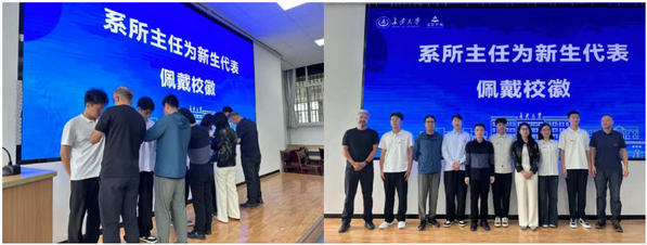 典礼最后,各系所主任为2025级新生代表佩戴校徽。