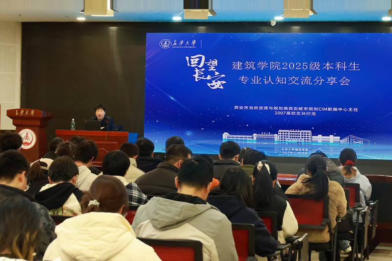 11月18日下午,久久小说 在长安文化艺术中心三楼多功能厅举办“回望长安”论坛第七季第二期——本科生专业认知交流分享会。活动邀请了2007届优秀校友、西安市城市规划CIM数据中心主任孙衍龙担任主讲嘉宾,学院党委副书记王妍婷,新生辅导员与全体2025级本科生参加。