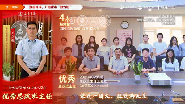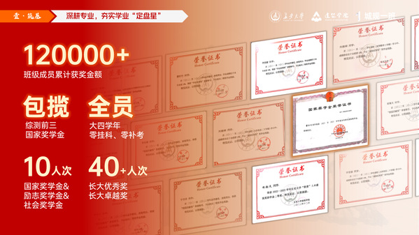 全面发展,绽放青春光彩。班级同学不仅引领学业“第一课堂”,更在“第二课堂”多点开花。累计获得第二课堂各级奖项 80余次,文化活动各级奖项 50余次,成功斩获陕西省大艺展一等奖,既是精通专业的“画图高手”,更是德智体美劳全面发展的“六边形战士”。在班主任王立勋老师(全校仅 6位的“优秀思政班主任”)和辅导员周艳龙老师的悉心引领下,班级部分同学已推免至天津大学、华南理工大学、重庆大学等国内顶尖学府深造,真正实现“聚是一团火,散是满天星”。